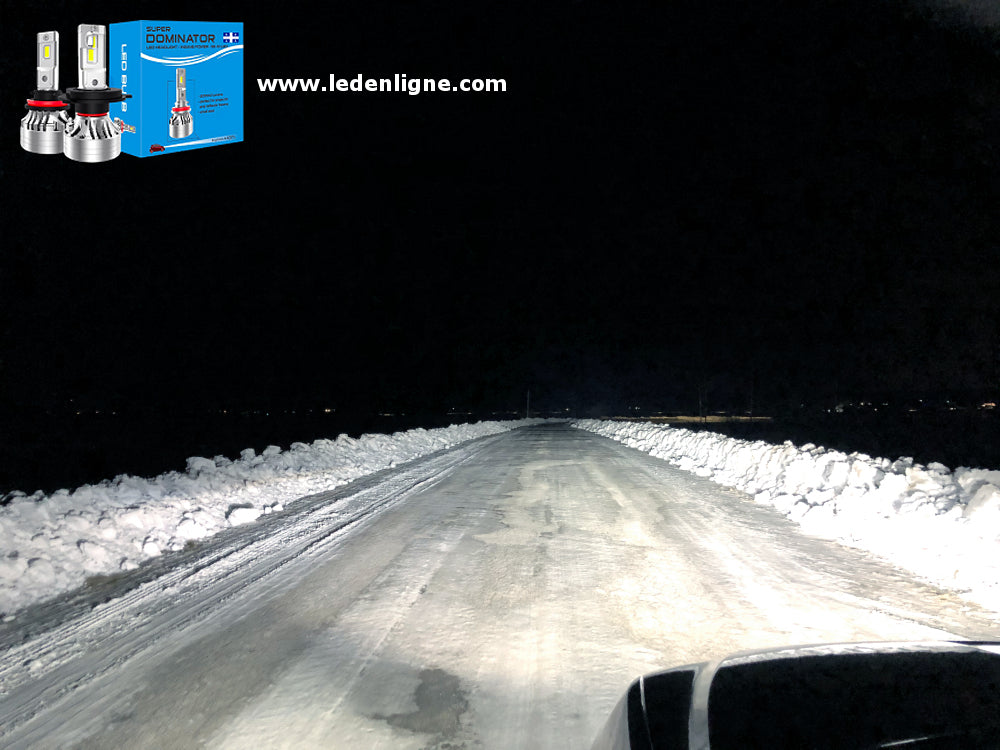 - 1x paire de LED SUPER Dominator 20 000 lumens, 6500K (blanc froid) pour les BASSES, type H7, 4X plus puissant que les halogènes, format compact, ne cause pas d'interférence radio, socket ajustable 360 degrés pour un positionnement optimal! Performe très bien dans les phares à réflecteurs et projecteurs! Modèle SUPER Dominator qui est une bombe de puissance!